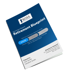 Limit one complimentary offer per household. Our B.O.S.S. Retirement Blueprint™ is specifically designed for households with a minimum investable assets of $200,000.